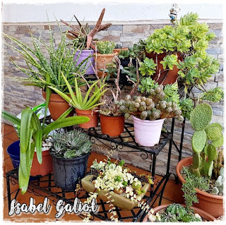 Me preguntáis muchísimo por el jardín, pensáis que es grande, pero es muy pequeñito, está en la parte delantera de un adosado. También decís que pensáis que será carísimo crear un jardín así, pero nada mas lejos de la realidad, muchas de las plantas que tengo llegaron a mi como diminutos esquejes que me dieron o que intercambié, o como pequeños cactus que costaron céntimos, o como semillas que yo cultivé, no suelo comprar plantas grandes, así que puede que en lo que más gastemos sea en turba negra, y los otros componentes que uso en la mezcla de tierras.